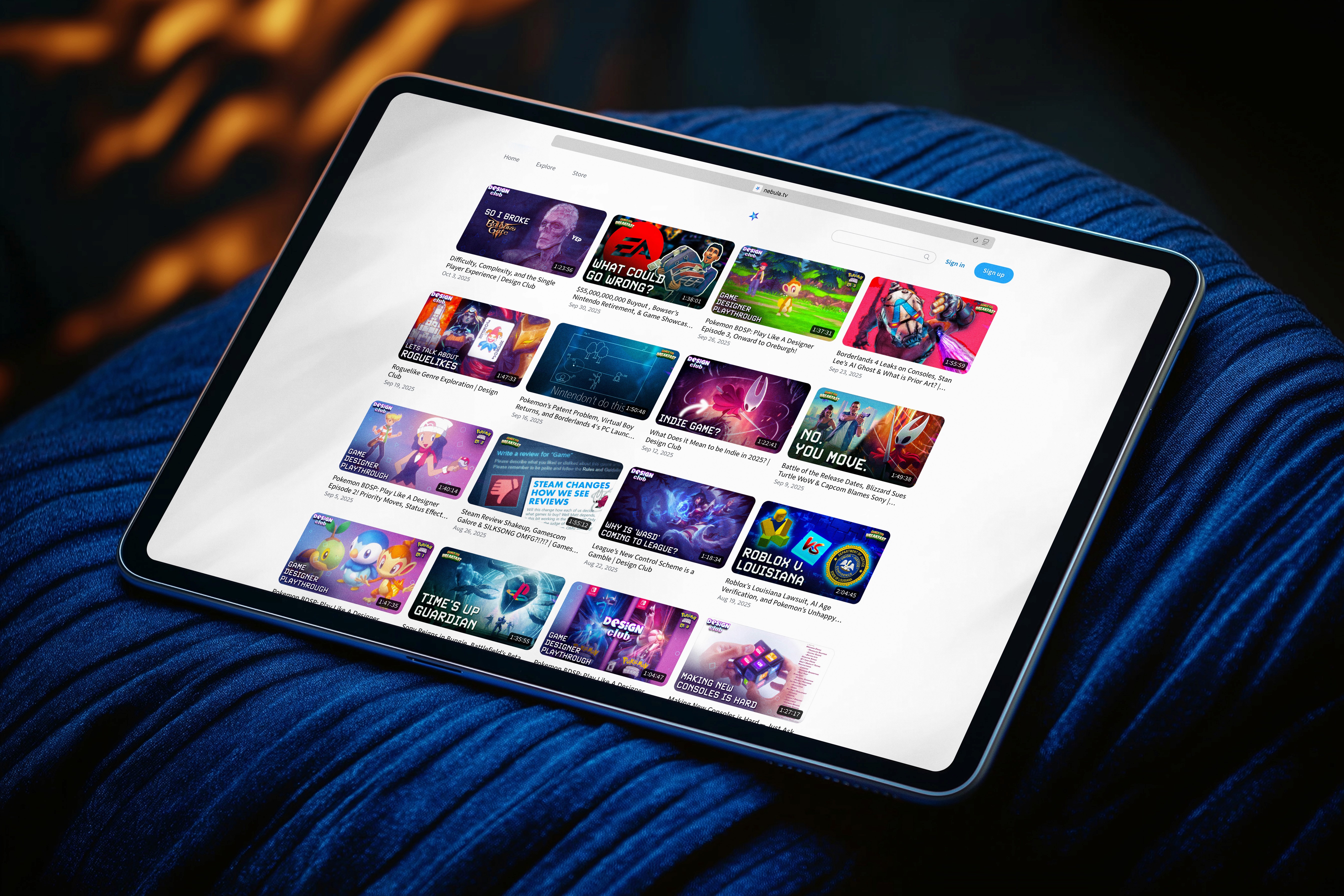[Client] Extra Credits Live hosts two weekly talk shows on Nebula.tv. Games for Breakfast where Matt and Will serve up the most interesting gaming and tech news of the week... but with waffles! Design Club where Geoff and Will deep dive into evergreen game design topics too long for our animated shows. [Problem] Maintaining a consistent standard of visually compelling thumbnails that are recognizable across multiple series while remaining cohesive within one channel brand is particularly challenging with two weekly releases. [Solution] A carefully designed thumbnail template transforms the demanding weekly task into a streamlined, efficient process. By establishing consistent layouts, typography, color palettes, and visual hierarchy in advance, the team behind the channel can focus on intentional refinements rather than reinventing the wheel.