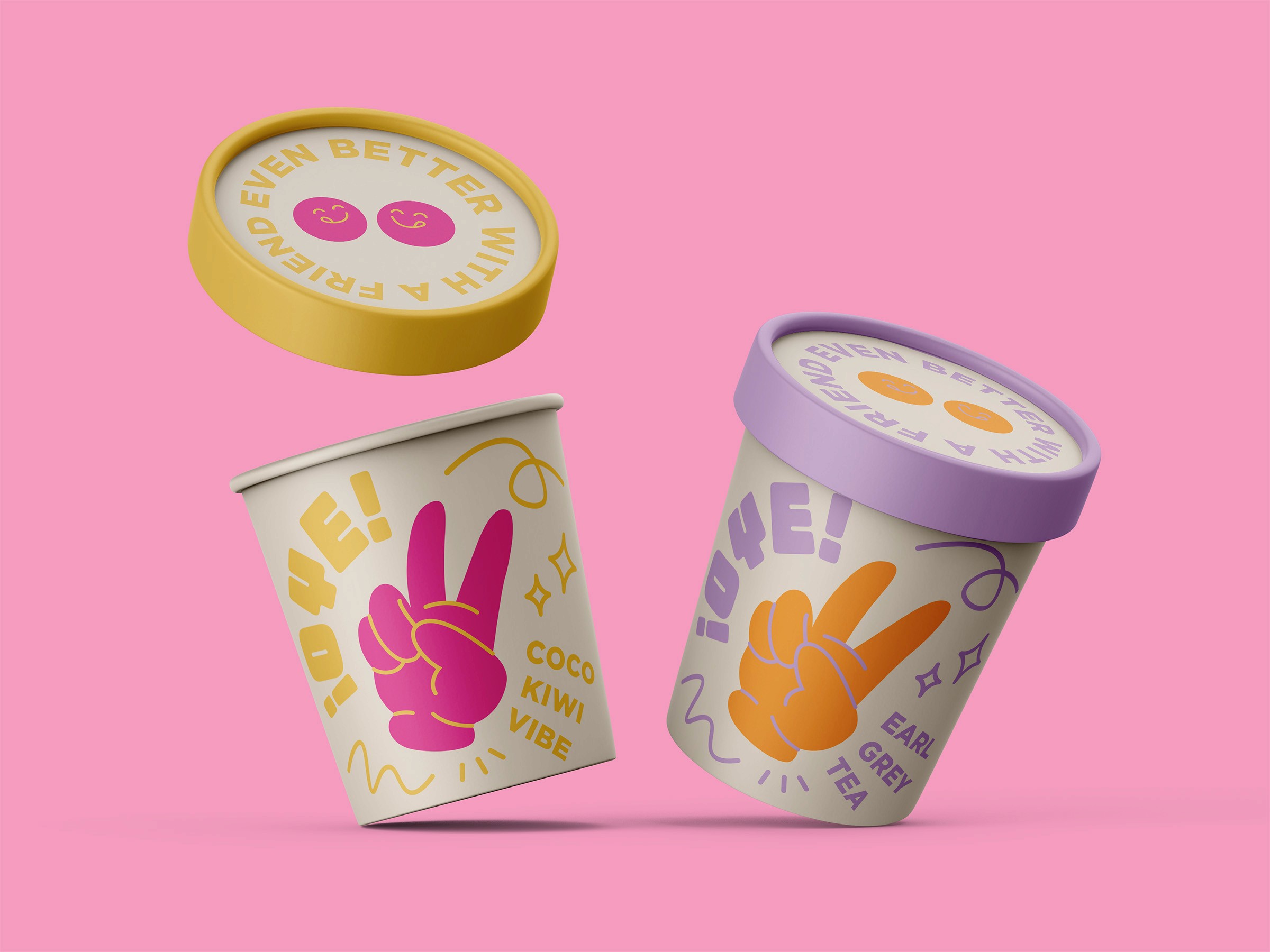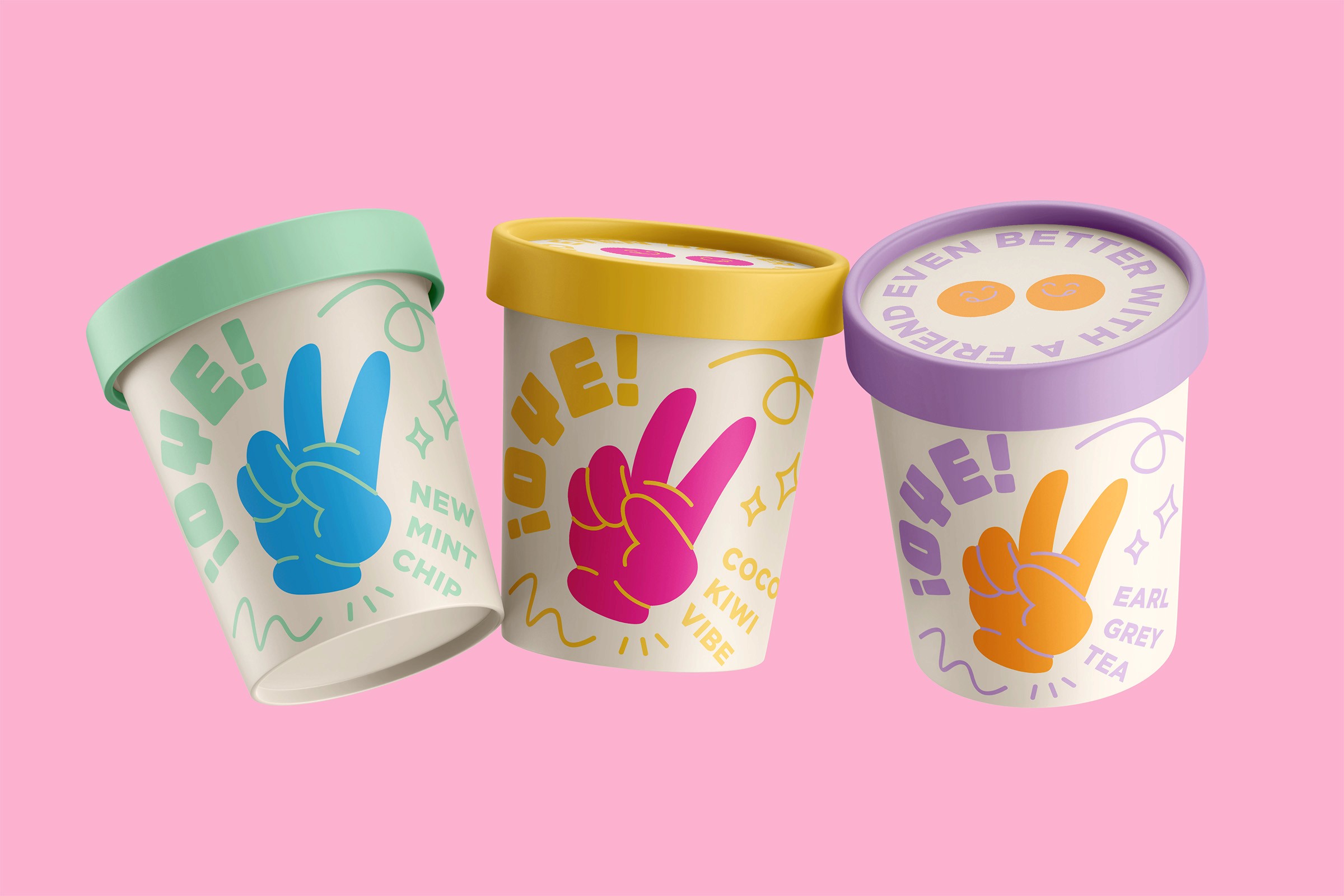 [Client] ¡Oye! (aka "Hey!") is an informal Spanish greeting or exclamation that adds an extra touch of friendliness. Inspired by this lively expression, this ice cream brand encourages people to savor life’s little moments and bond over scoops of delicious ice cream. The brand’s mission is to bring people together, fostering fun and quality time with loved ones. [Problem] Standing out as an ice cream brand in supermarkets nationwide is tough when shelf space is tight and legacy competitors dominate with deep loyalty and bigger budgets. In a crowded freezer aisle, packaging has seconds to grab attention and signal flavor, quality, and value. [Solution] Surrounded by conventional, understated packaging, vivid colors and dynamic typography ensure the product stands apart in the freezer aisle. The aesthetic conveys confidence and character, presenting the brand as contemporary and distinctive. Beyond visual impact, it strengthens brand recall and encourages one-time purchasers to become repeat customers.